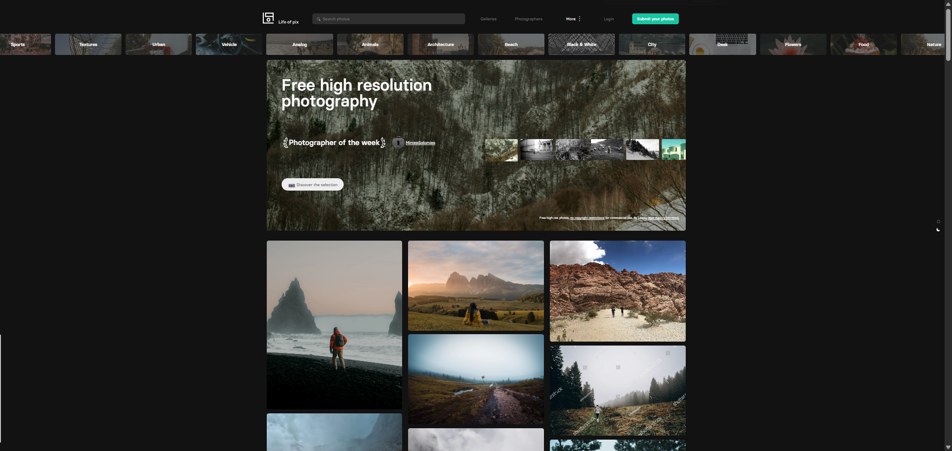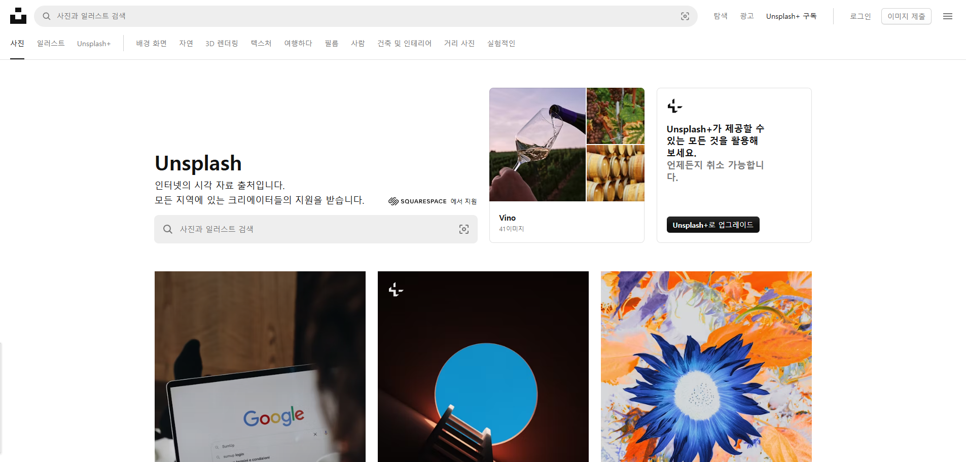 전 세계 사진작가들이 기여하는 고퀄리티 이미지 플랫폼입니다. 주제별 카테고리도 잘 정리되어 있고, 자연 풍경, 사무실, 인물 사진 등 거의 모든 분야의 이미지를 찾을 수 있습니다.